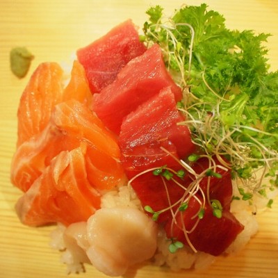 開店初日にいただいたのは2つのコースのうち、写真のようにボリュームがたっぷりのちらし寿司がメインの方。このほかに小鉢や牡蠣の茶碗蒸し、汁碗がつきます。とても手の込んだ贅沢な食事でした。