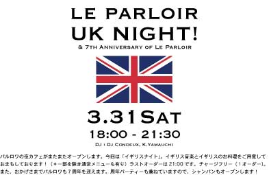 3/31 パルロワ夜カフェ UKナイト&7周年パーティー