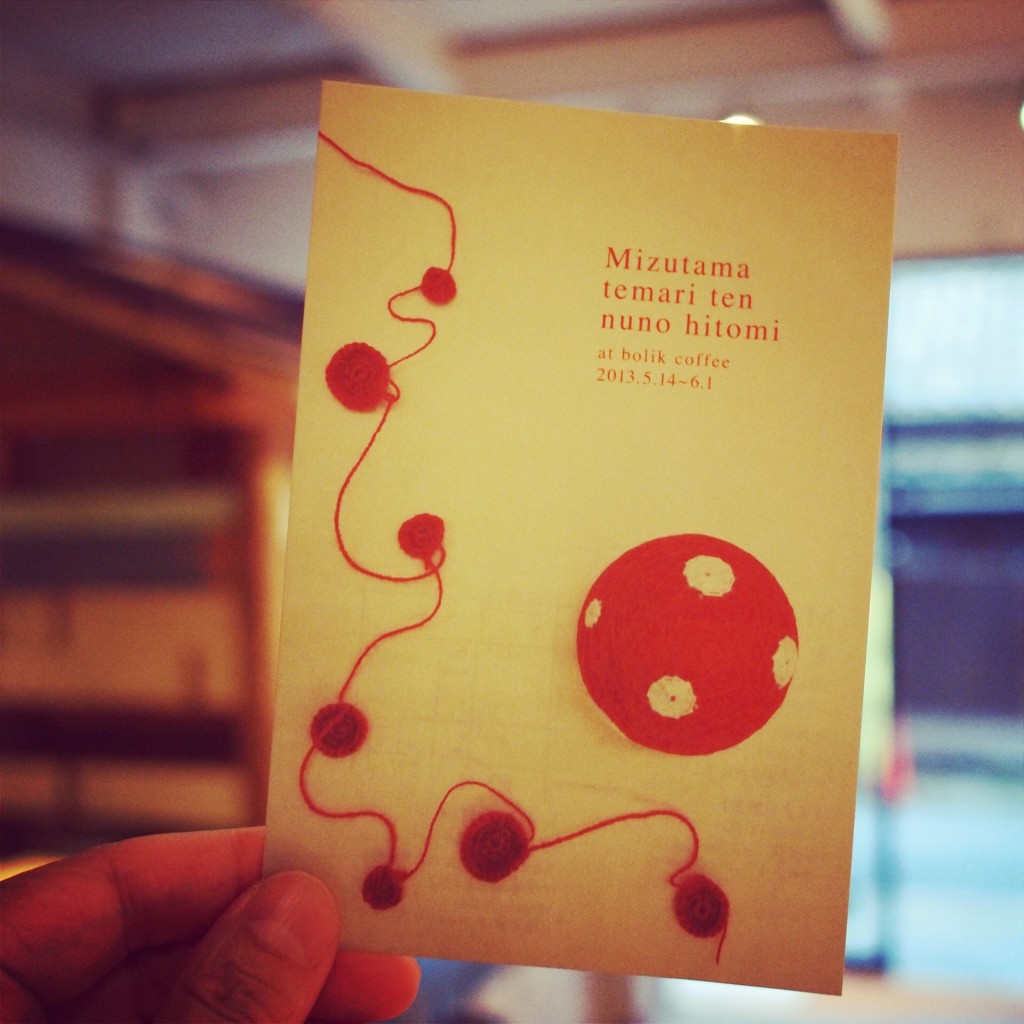 布仁美さんの手まり展が今年もボリクコーヒーで開催されます。 今回は、伝統的なてまり柄ではなく、水玉、しましま、三角など、今までとは違ったてまりが並びます。 会期最終日にはカナカナでてまり教室も開催されます。 ボリクコーヒー 5月14日(火)~6月1日(土) 月曜定休 手まり教室 カナカナ 5月19日(日)14時から18時 参加費 3000円(予約制) 材料・ドリンク付き